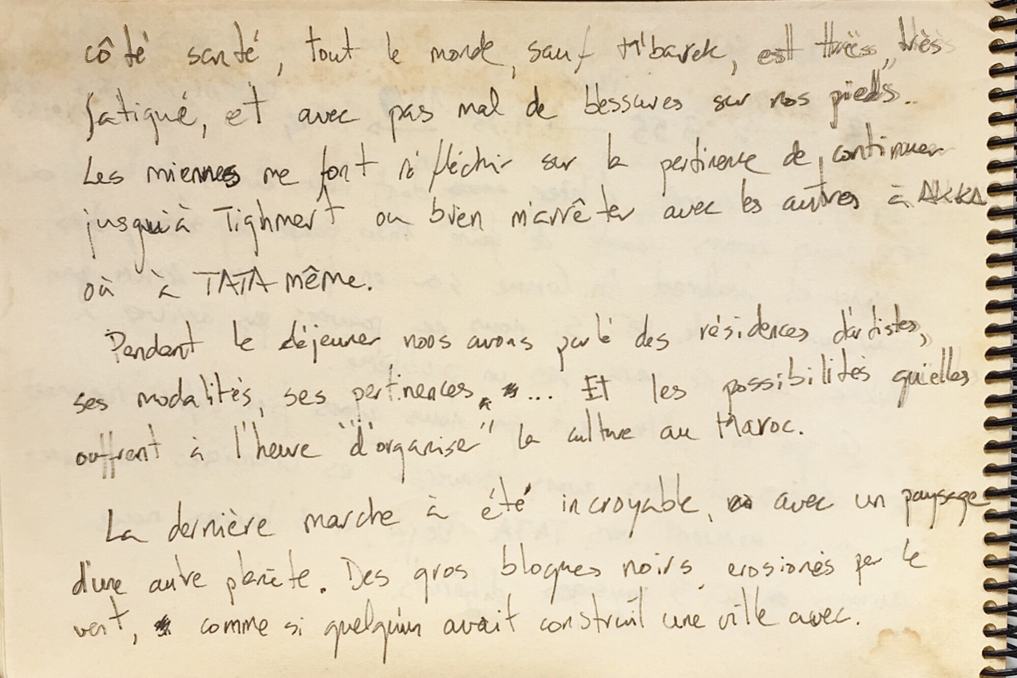 In terms of health status, everyone, except M'barek, is very, very tired, and with lots of injuries on their feet. Mine make me think about the relevance of continuing to Tighmert or maybe to stop at Akka or Tata.