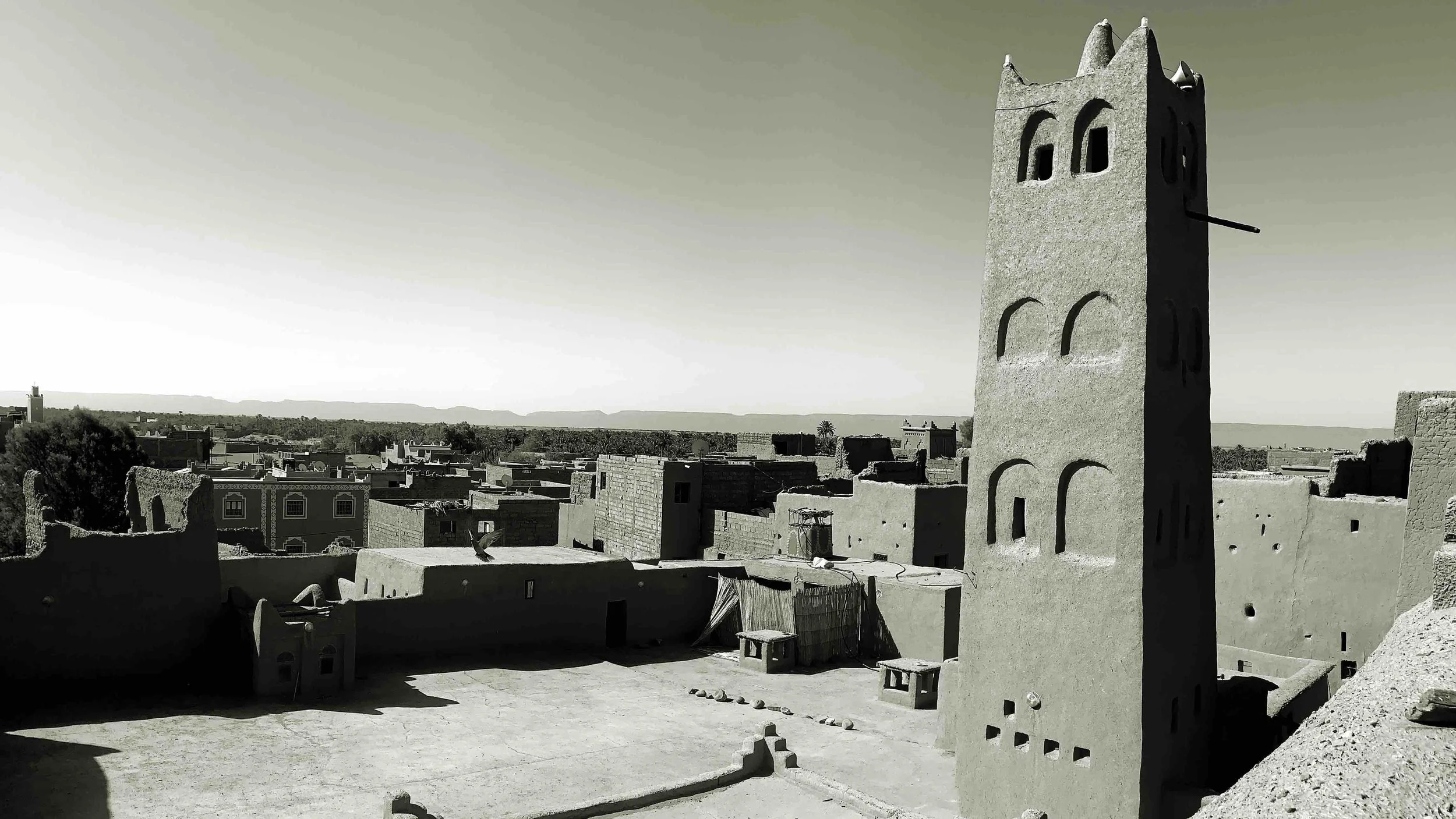 Como parte integrantes de los alcázares, alcazabas y zauías, tenemos elementos de gran singularidad e interés patrimonial, pese al desconocimiento total de su datación debido a la ausencia de trabajos de investigación adaptados a los sistemas constructivos de los oasis. En el valle del Drâa en Zagora nos encontramos una sucesión de seis palmerales a lo largo del río Drâa con una longitud de 200 km, que albergan 233 alcázares, 26 alcazabas y 40 zauías. En todos ellos había una mezquita pero en los alcázares más importante podía haber dos e incluso tres. En total habría unas 400 mezquitas, de las cuales sólo 5 tenían alminares, de los que hoy en día solo quedan 3 (Tinmasla, Amezru y Nasrate), mostrándonos la altura que pueden alcanzar las construcciones en adobe y tapial y que estos elementos arquitectónicos son prescindibles.